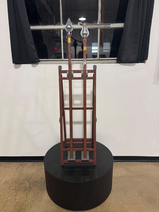 Artist Note: The shorter spear I have had for 2 years. It has traveled with me as we moved the studio from my house to the new gallery. Built after watching Tarzan.