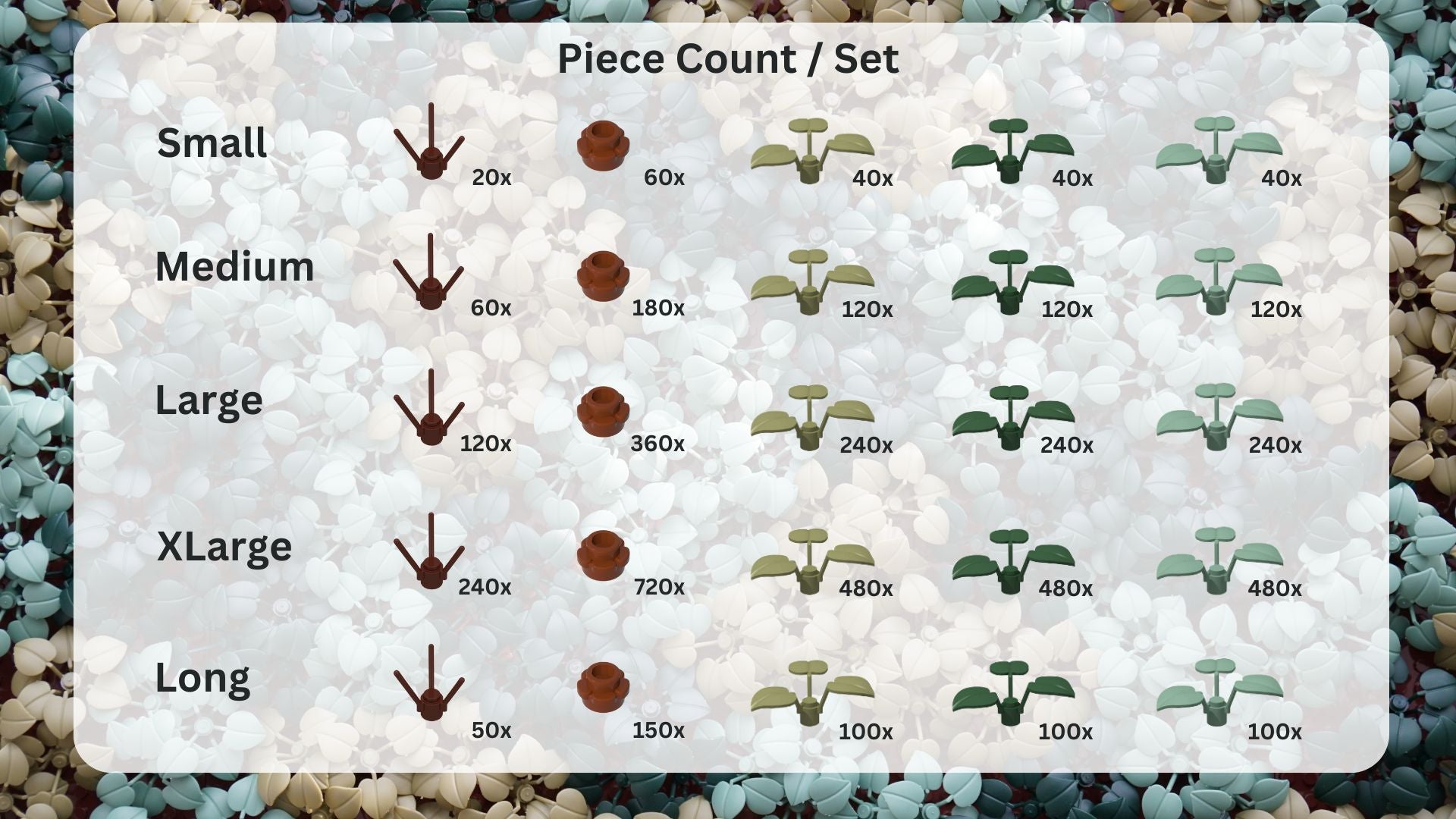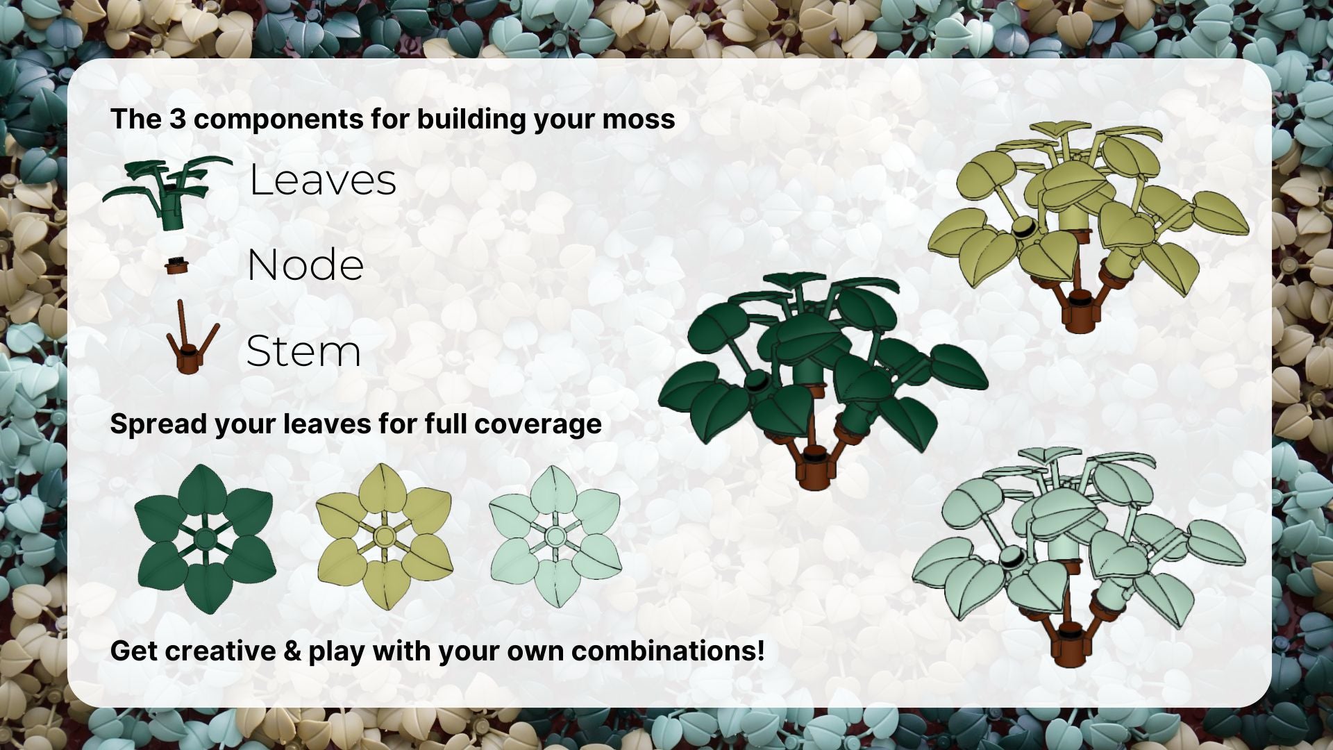 We provide digital instructions for the Moss Garden and Flower Addon sets. All Moss Garden instructions are designed by Modern Brick Haus.