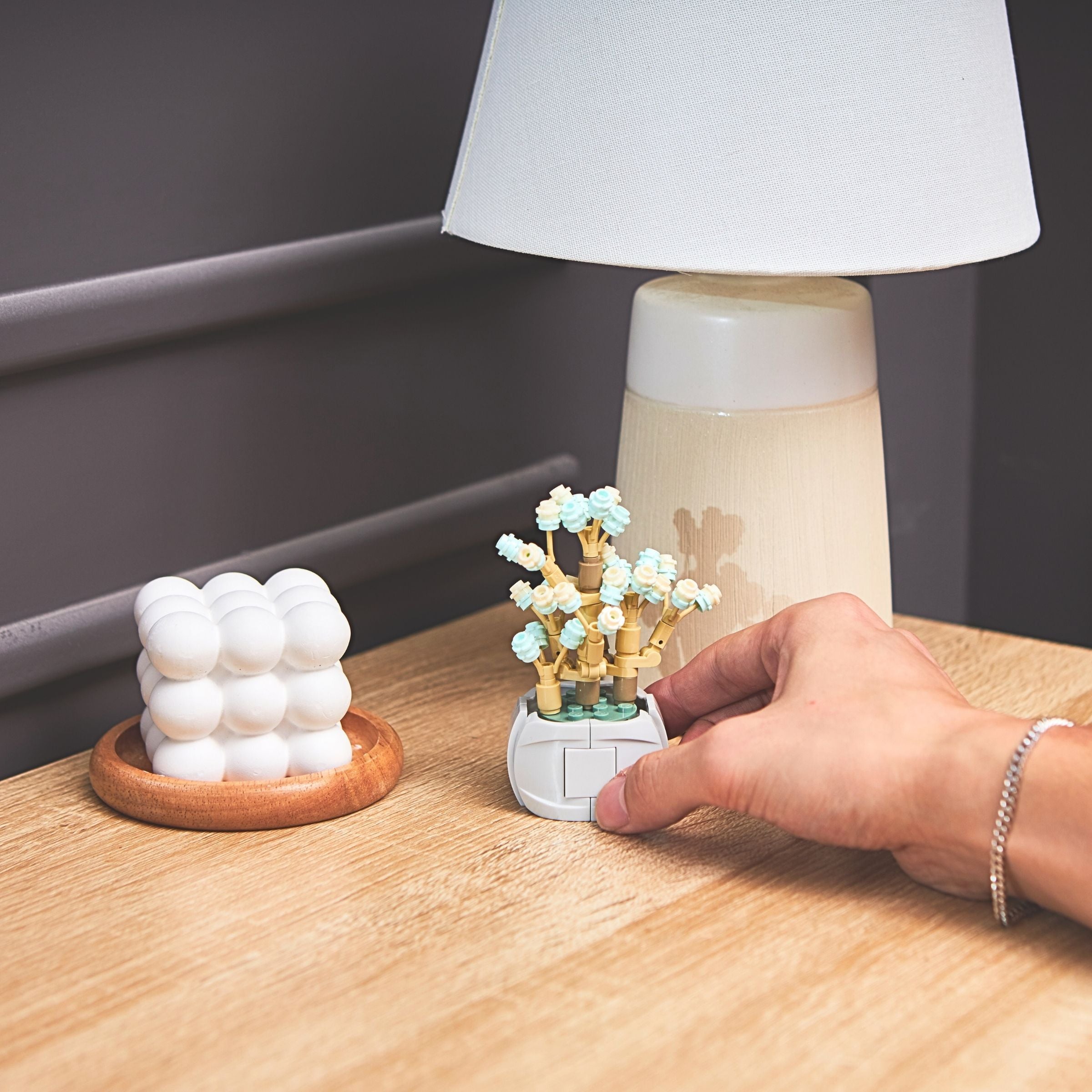 The Blue Ice Succulent is a unique artificial plant and brick building set that helps to stimulate focus and channel creativity. The Blue Ice Succulent is a personal and original way to express one's creativity that will become a classic element in any home. Take a break, focus yourself, and unleash your creative side with our Modern Brick Haus Home Decor.