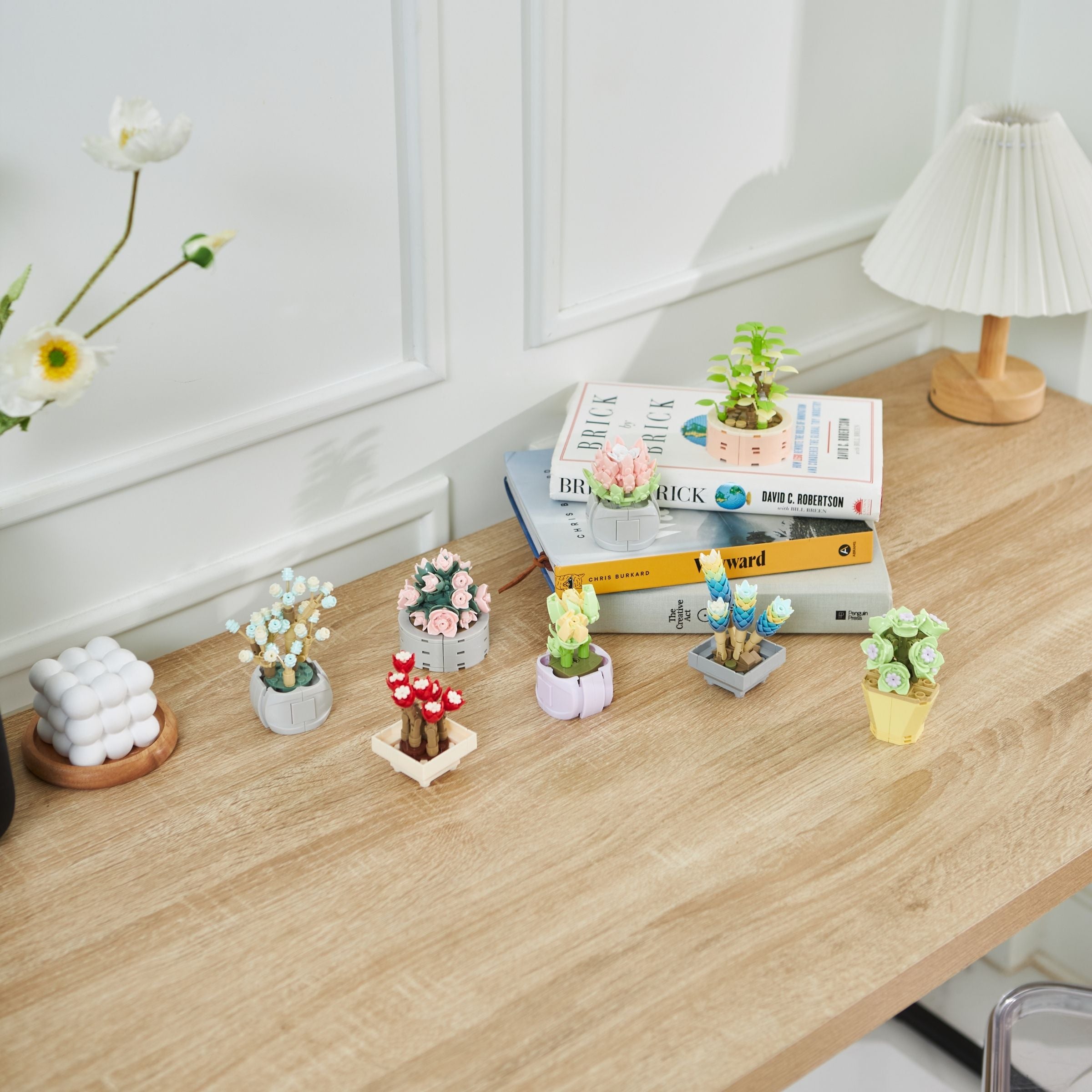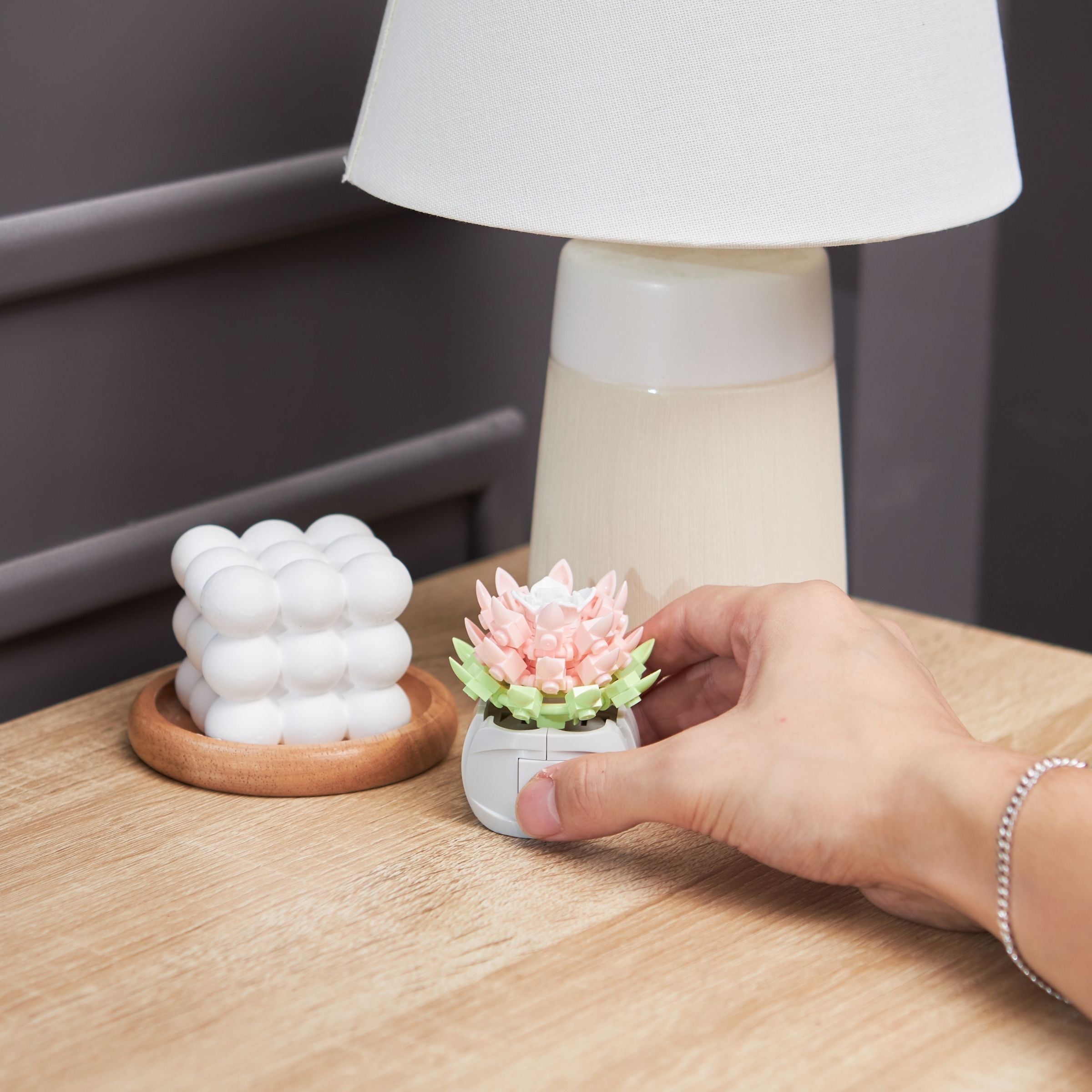 The Desert Flower Succulent is a unique artificial plant and brick building set that helps to stimulate focus and channel creativity. The Desert Flower Succulent is a personal and original way to express one's creativity that will become a classic element in any home. Take a break, focus yourself, and unleash your creative side with our Modern Brick Haus Home Décor.