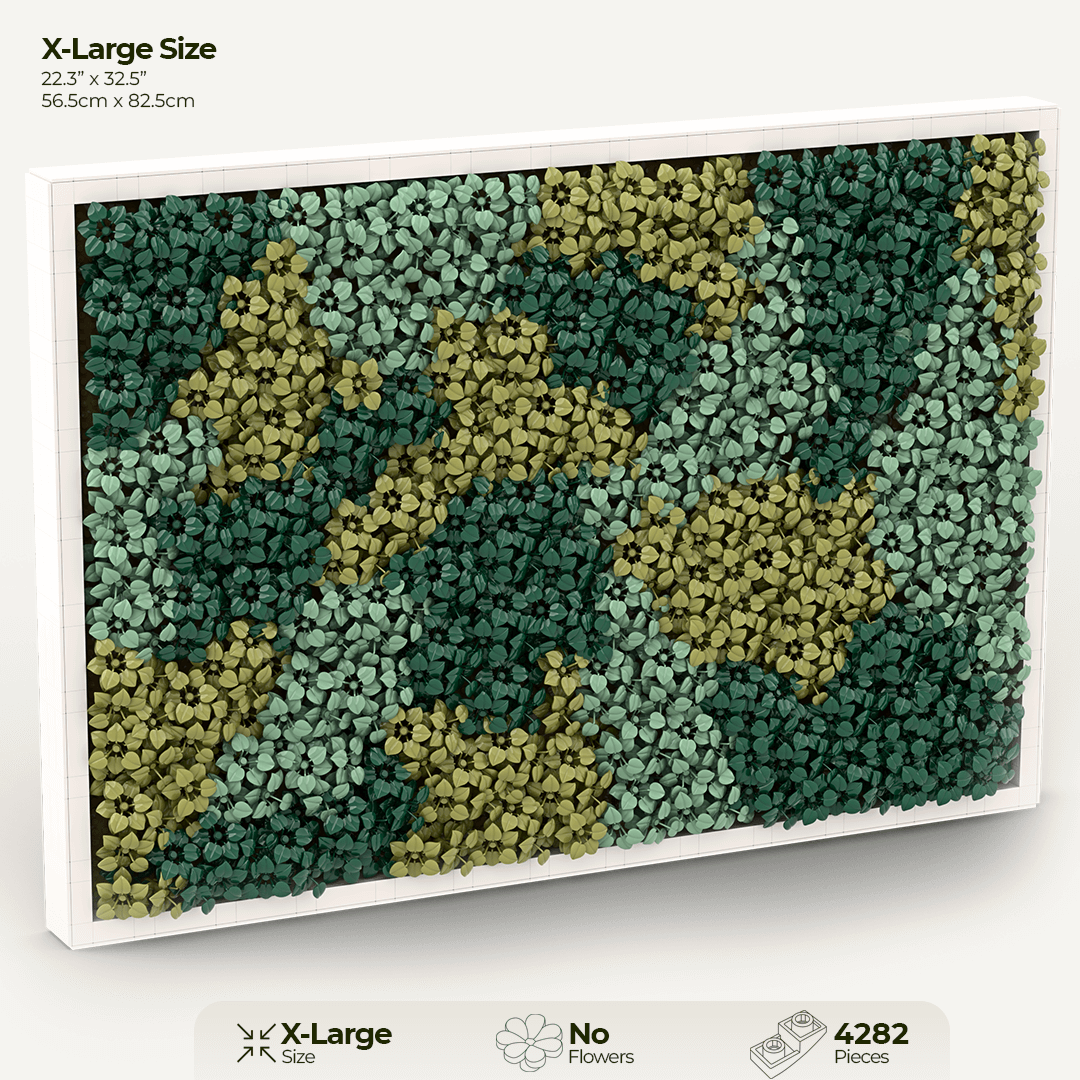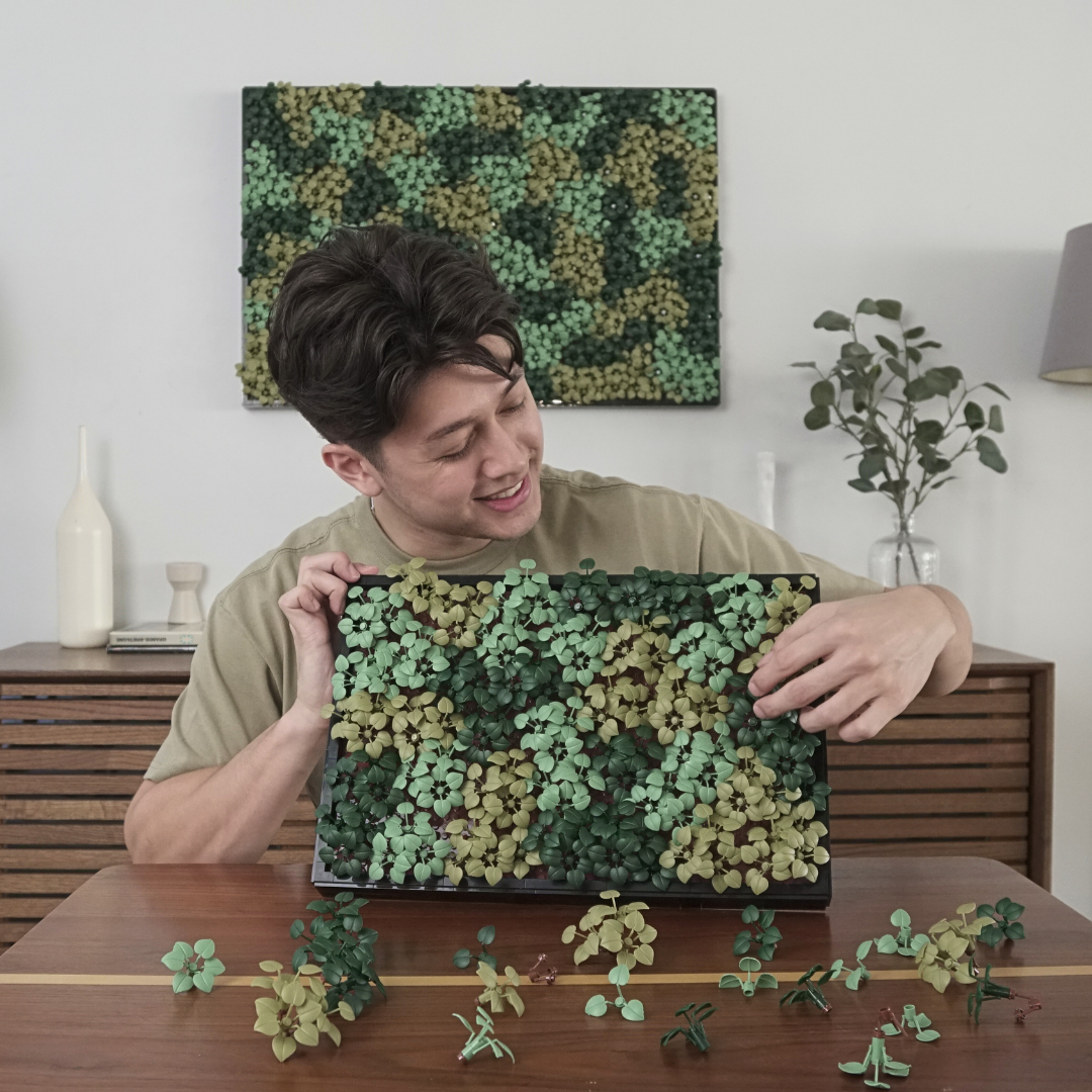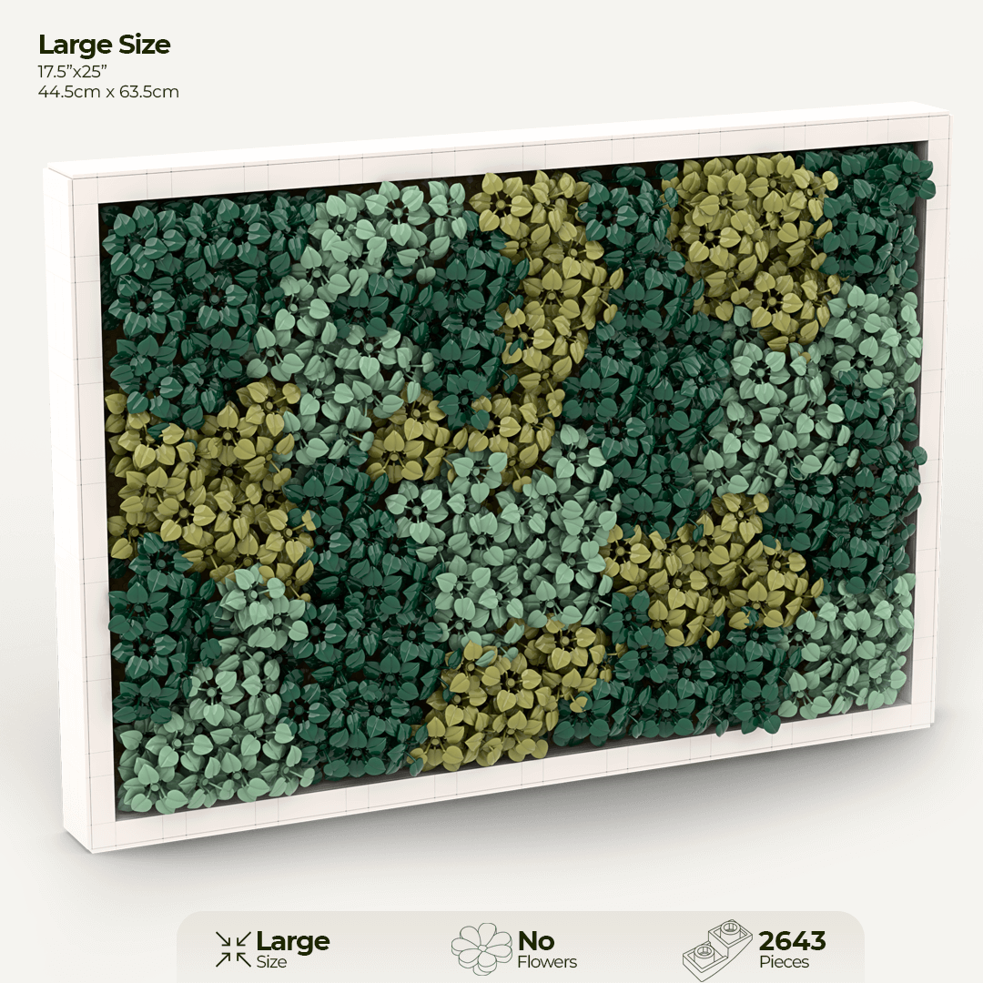 A modern take on the nostalgic brick medium: The Moss Garden collection re-imagines a childhood favorite of building with bricks. This curated set of botanic bricks was made for you to create your own brick build art. Start by building your brick art canvas then grow your botanic garden. Made to build, design, and rebuild into unlimited potential design combinations so you can Build something Wonderful.